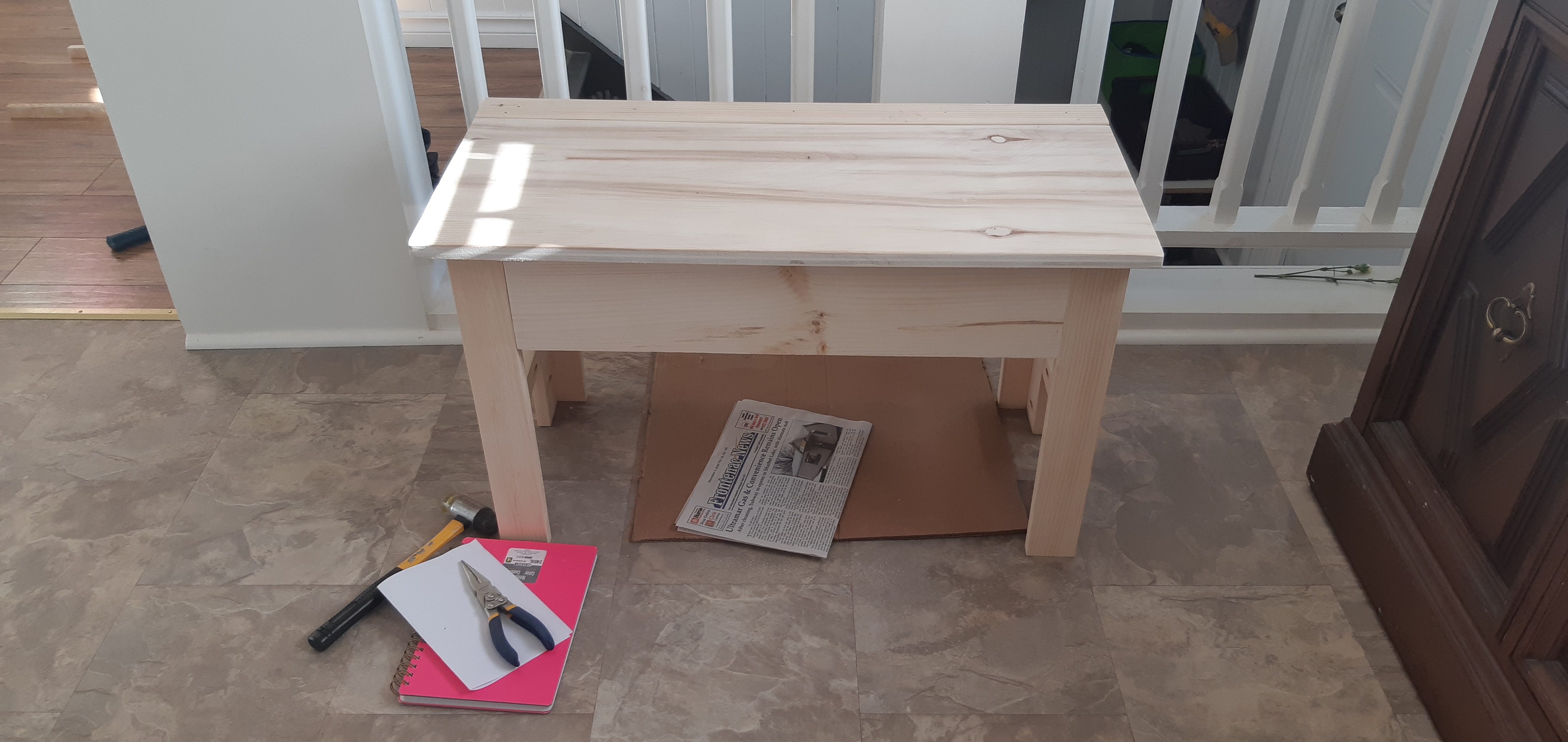 Nail gun to attach legs to box frame