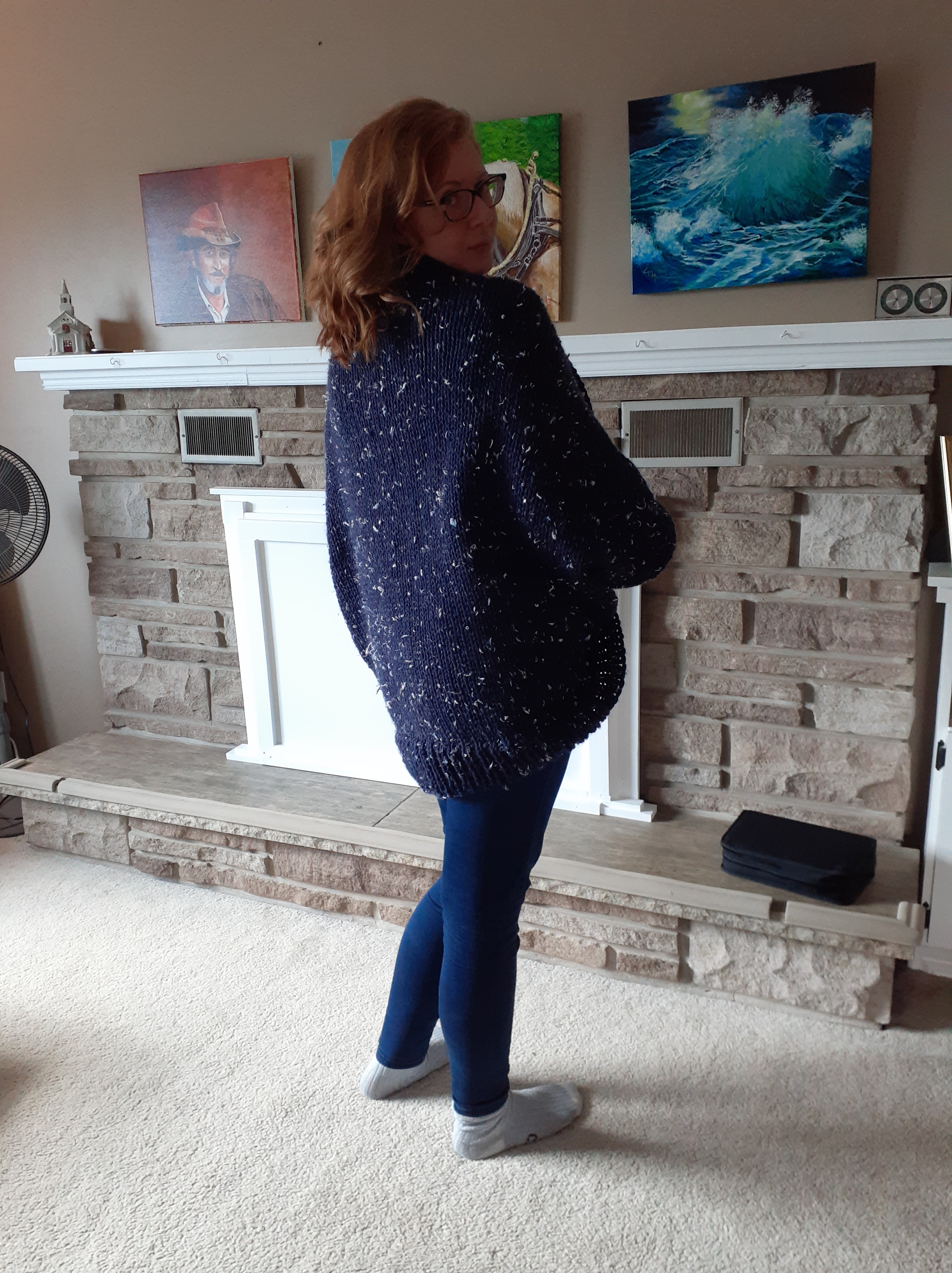 The shrug turned out very nicely, but was not exactly a one-size fits all pattern. However, that being said, it looks amazing on my taller sister! So cozy!