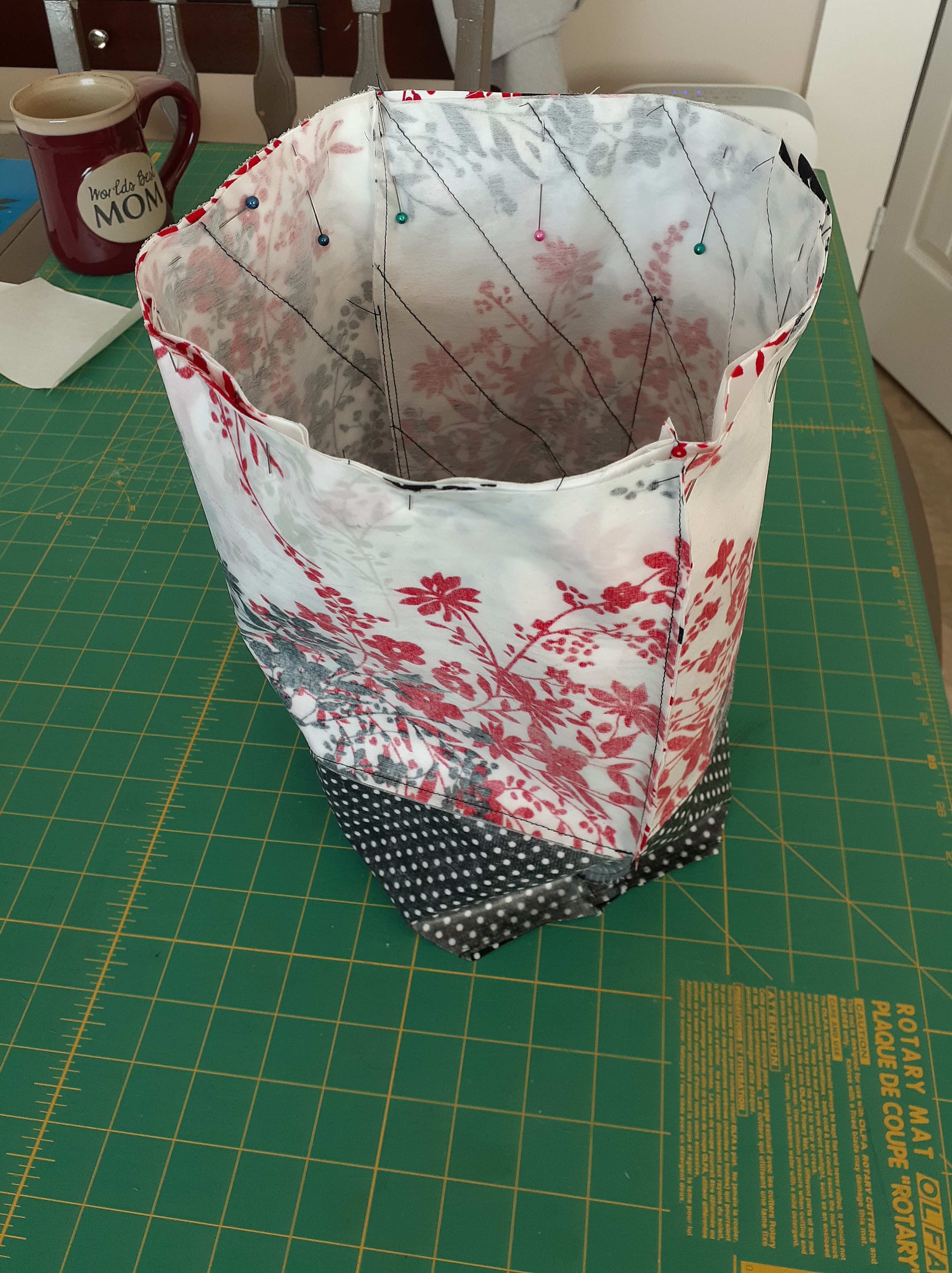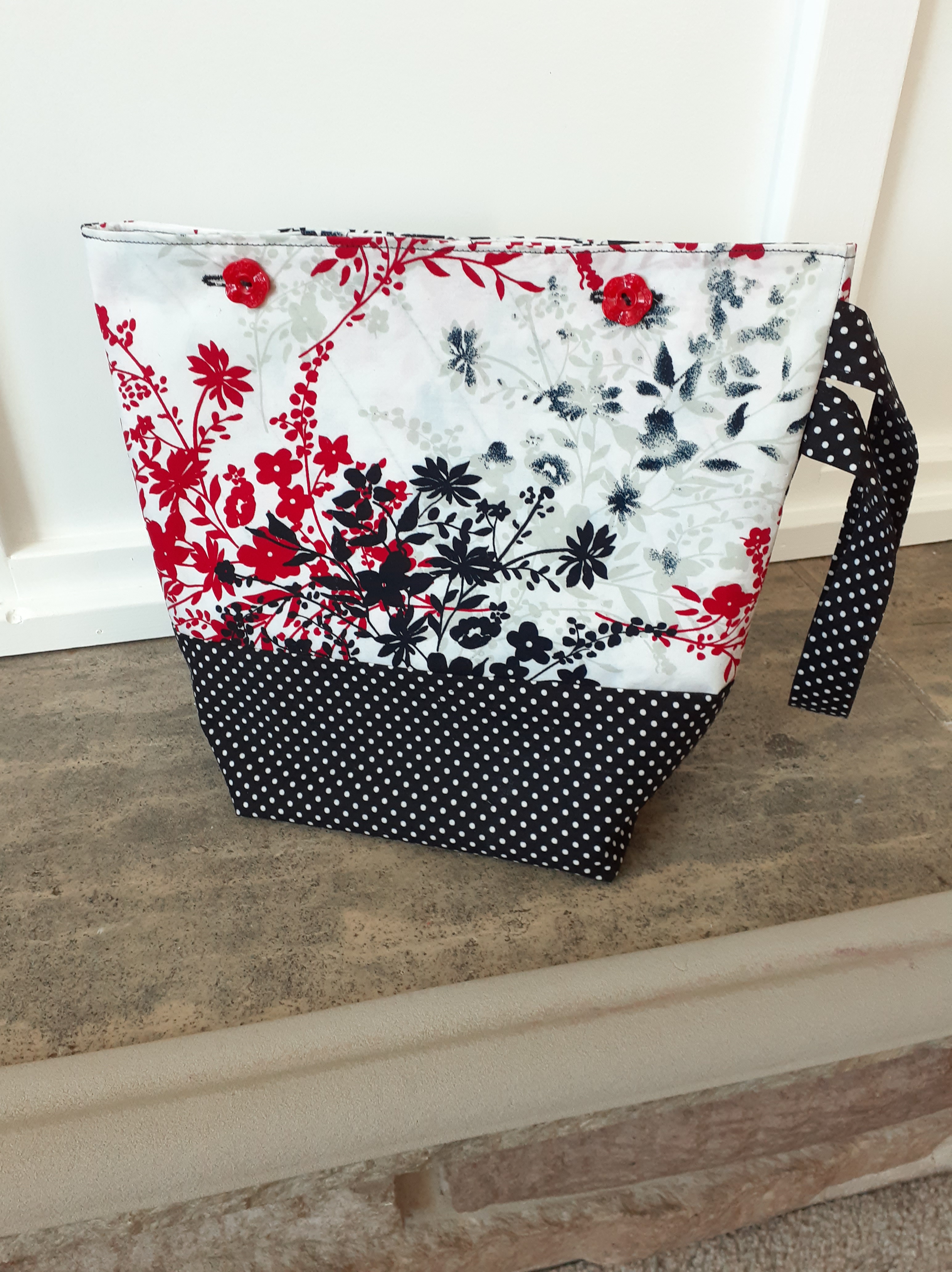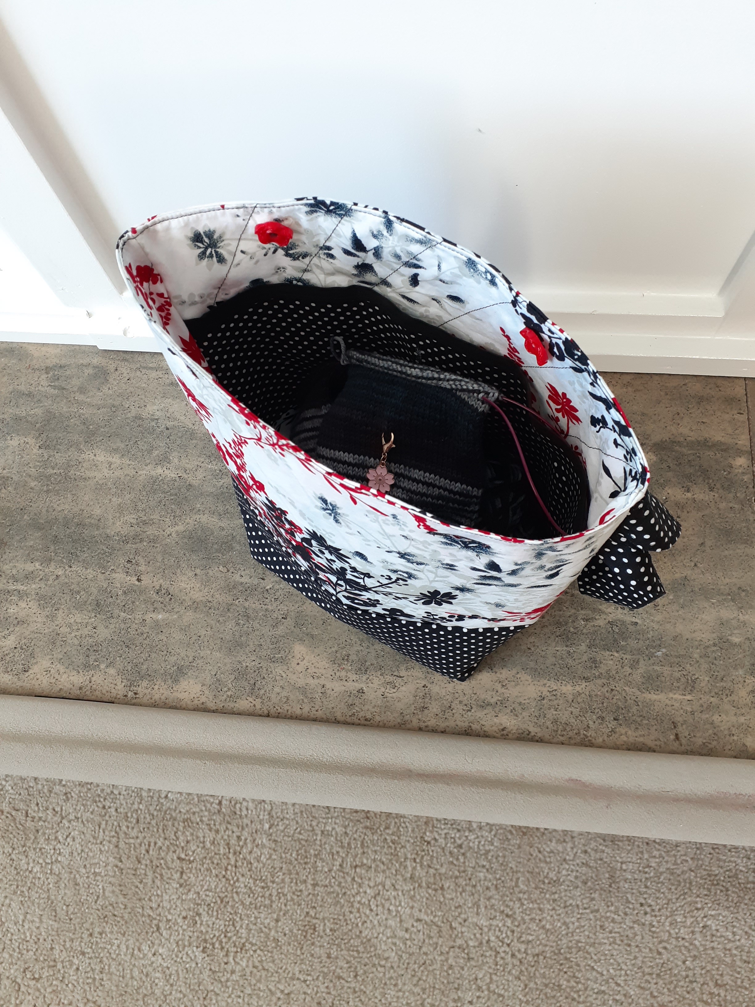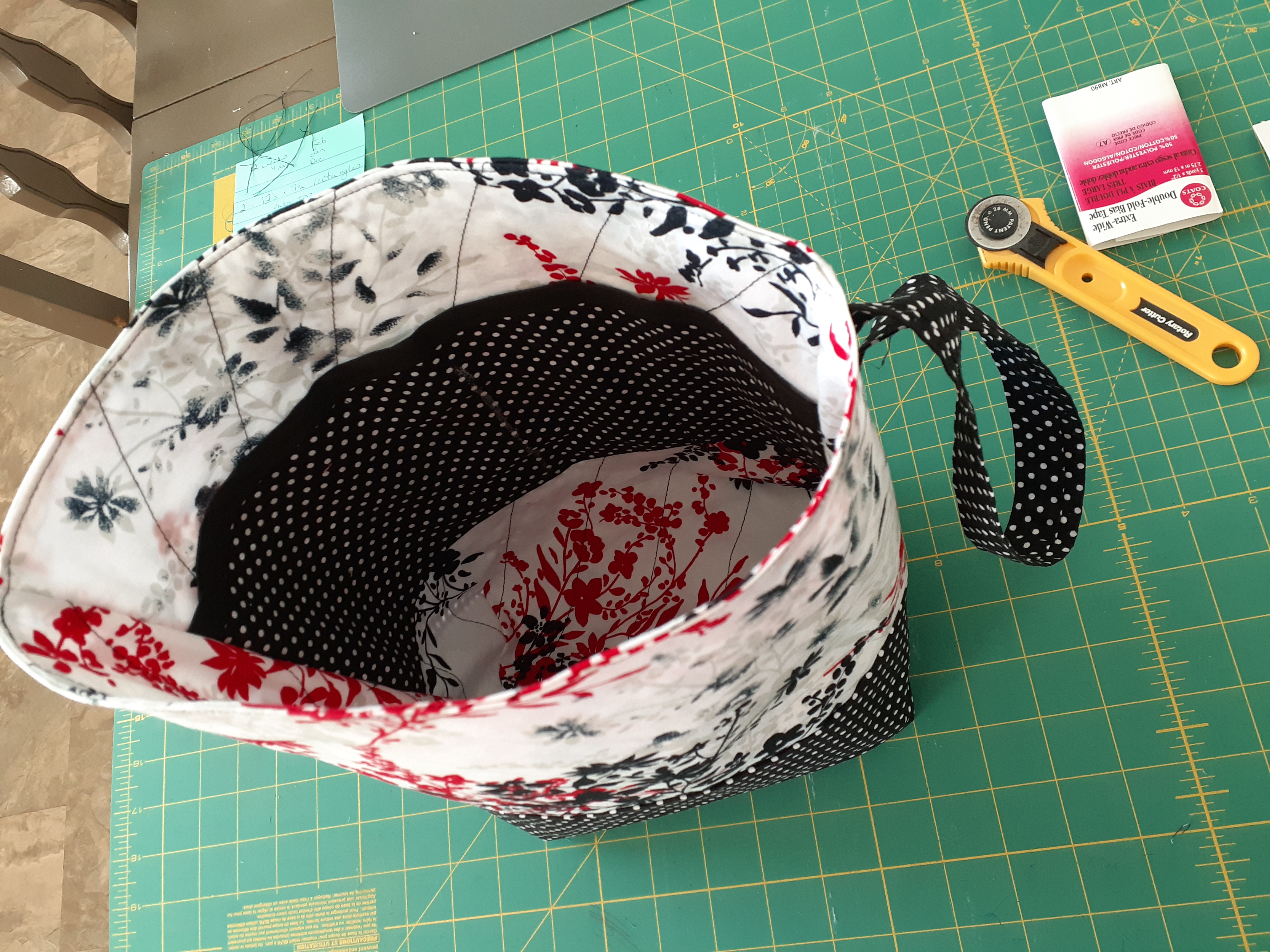 This is a sewn project, but it’s for my knitting, so it deserves to be included here. I really wanted to sew a pretty project bag for my small projects. I used a free pattern at Spruce Crafts (https://www.thesprucecrafts.com/needlecrafts-project-bag-4174921#:~:text=Instructions%201%20Prepare%20the%20Fabric%20Pieces.%20Cut%20the,8%20Put%20Your%20Project%20Bag%20to%20Use.%20) to create the bag, but I chose buttons for closure instead of snaps. I only had enough fusible interfacing to put on the outer fabrics and sewed interfacing to the lining material. I also added a series of 3 pockets inside because I like to have spots to keep little extras that you always end up needing. If you’re home, then you have easy access to your stitch markers, hooks, scissors or whatnot, but you need to have them with you if you are out. Pockets are a lovely addition to this design. I think that this bag turned out quite well. The size 11-1/2″ wide by 9-1/2 high and 5″ deep is a great for my socks, but could easily fit a scarf.