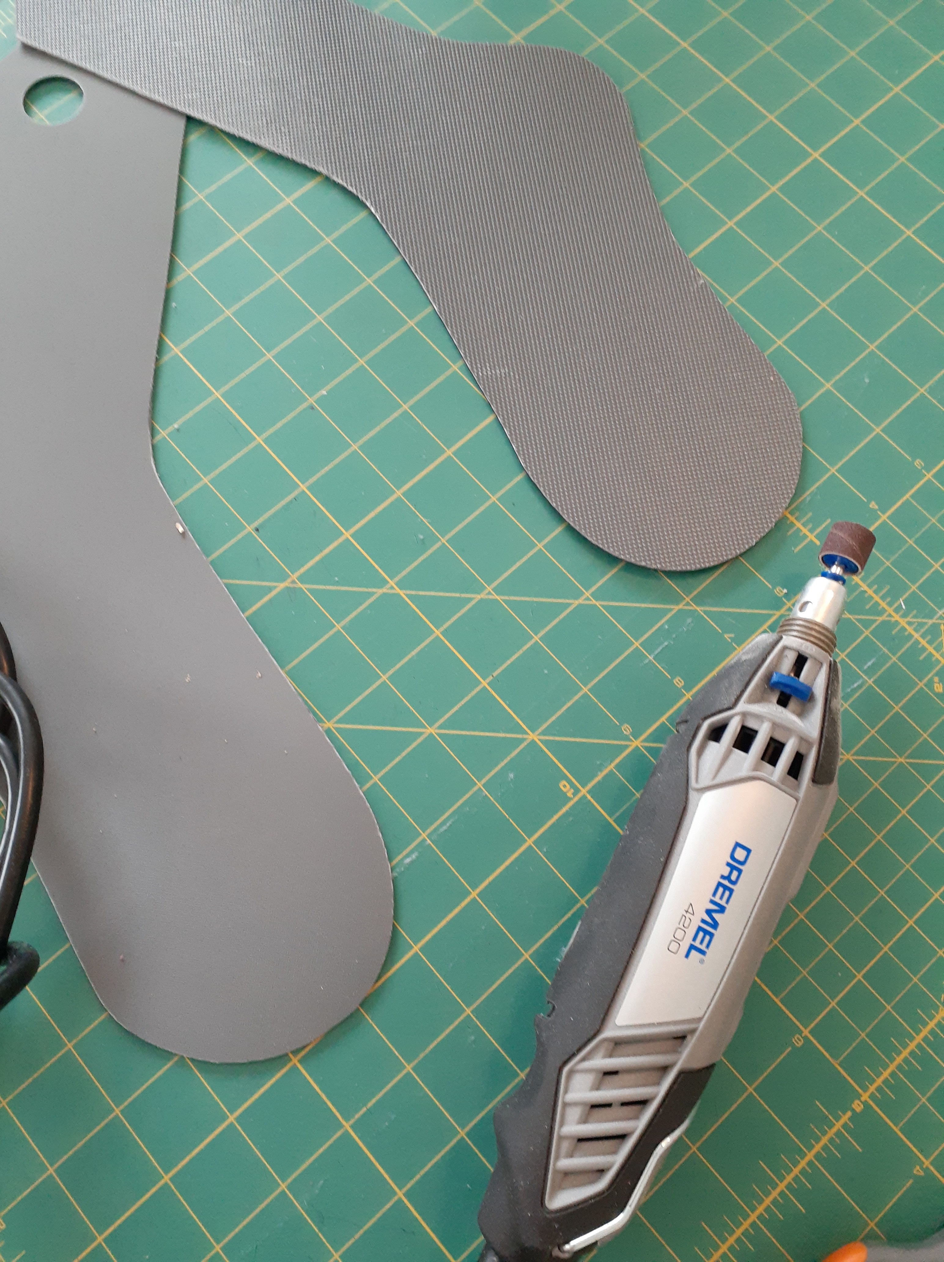 These DIY sock blockers are so handy and easy to make. I used the pattern by Janet Ballweber found at http://www.cyberseams.com and used vinyl cutting boards that I picked up at Winner’s. I used a sharpie to mark it and a mix of a rotary cutter and scissors to cut the forms out. I used sand paper and a Dremel to clean the edges, but the sandpaper was honestly better for the job. The Dremel sent little bits flying and caused more clean-up than expected. A great money saver! The pre-cut hole in the cutting board will make hanging the socks to dry on the blockers so simple.