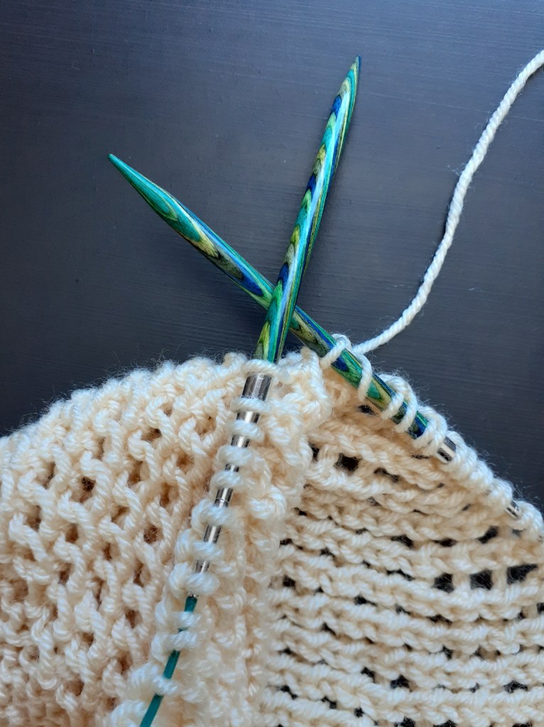 This is a sewn project, but it’s for my knitting, so it deserves to be included here. I really wanted to sew a pretty project bag for my small projects. I used a free pattern at Spruce Crafts (https://www.thesprucecrafts.com/needlecrafts-project-bag-4174921#:~:text=Instructions%201%20Prepare%20the%20Fabric%20Pieces.%20Cut%20the,8%20Put%20Your%20Project%20Bag%20to%20Use.%20) to create the bag, but I chose buttons for closure instead of snaps. I only had…